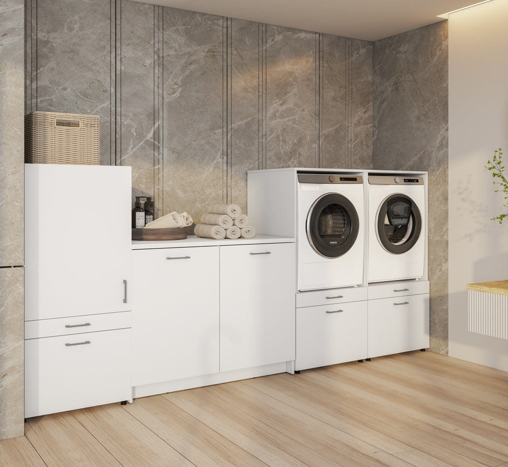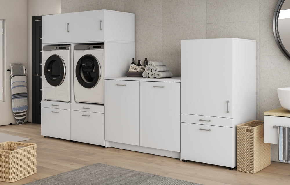 - Porque transforma uma zona técnica ou de lavandaria numa componente com estilo, leveza e organização.